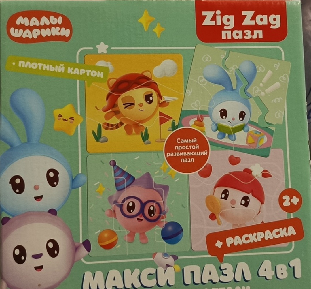 Я приобрела коробочку с пазлами, в торопях, первое, что попалось из нужной серии это были пазлы для малышей 2+ .