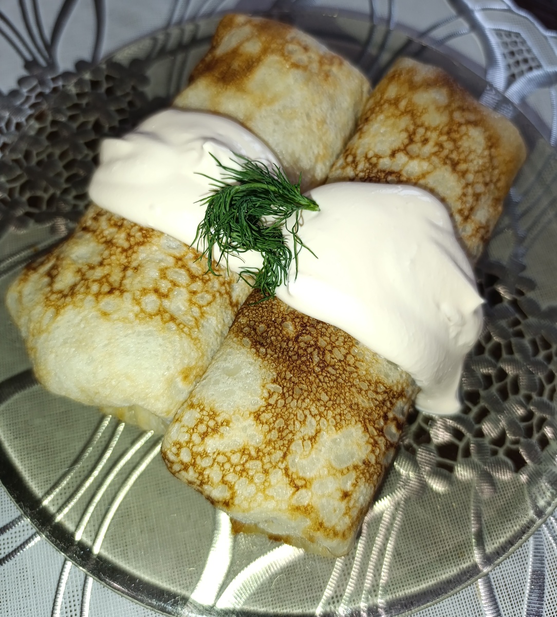 Ингредиенты: Блинчики (рецепт можно посмотреть здесь) фарш лук соль, перец по вкусу Нарезаем мелко лук и и немного пассируем Добавляем фарш (любой на Ваш вкус - куриный, говяжий, свиной), солим и перчим, обжариваем. Берем наш блинчик и в середину кладем обжаренный с луком фарш Сворачиваем конвертиком. Приятного аппетита!!!!!
