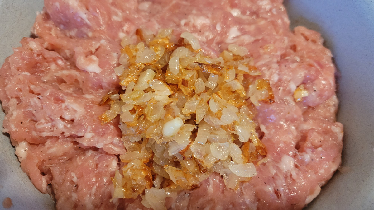 Приготовим с вами рулет из фарша. Это красивое, праздничное блюдо. Берём свино-говяжий фарш (я беру грамм 700-800), добавляем соль и перец по вкусу, измельченный обжаренный репчатый лук. Хорошо руками размешиваем. Для сочности добавляем в фарш немного воды и масла любого (можно сливочного или подсолнечного). В форму для запекания выкладываем фарш, разравниваем его в виде прямоугольника, я еще и бумагу специальную стелю, чтобы форму не мыть (очень удобно). Для начинки отвариваем куриные яйца и раскладываем посередине фарша по всей длине. Начинку можно брать любую. Я еще делала с вареной морковью с зеленью. Получилась серединка красное с зеленым. Собираем рулет, поднимая фарш с боков. Соединяем все швы, чтобы рулет не развалился при запекании. Смазываем рулет взбитым яйцом для образования красивой корочки и для склеивания. Ещё я майонезом смазывала, тоже хорошо получалось. Ставим в духовку запекаться на минут 30-40 до готовности. Можно закрыть фольгой, чтобы быть уверенным, что хорошо пр