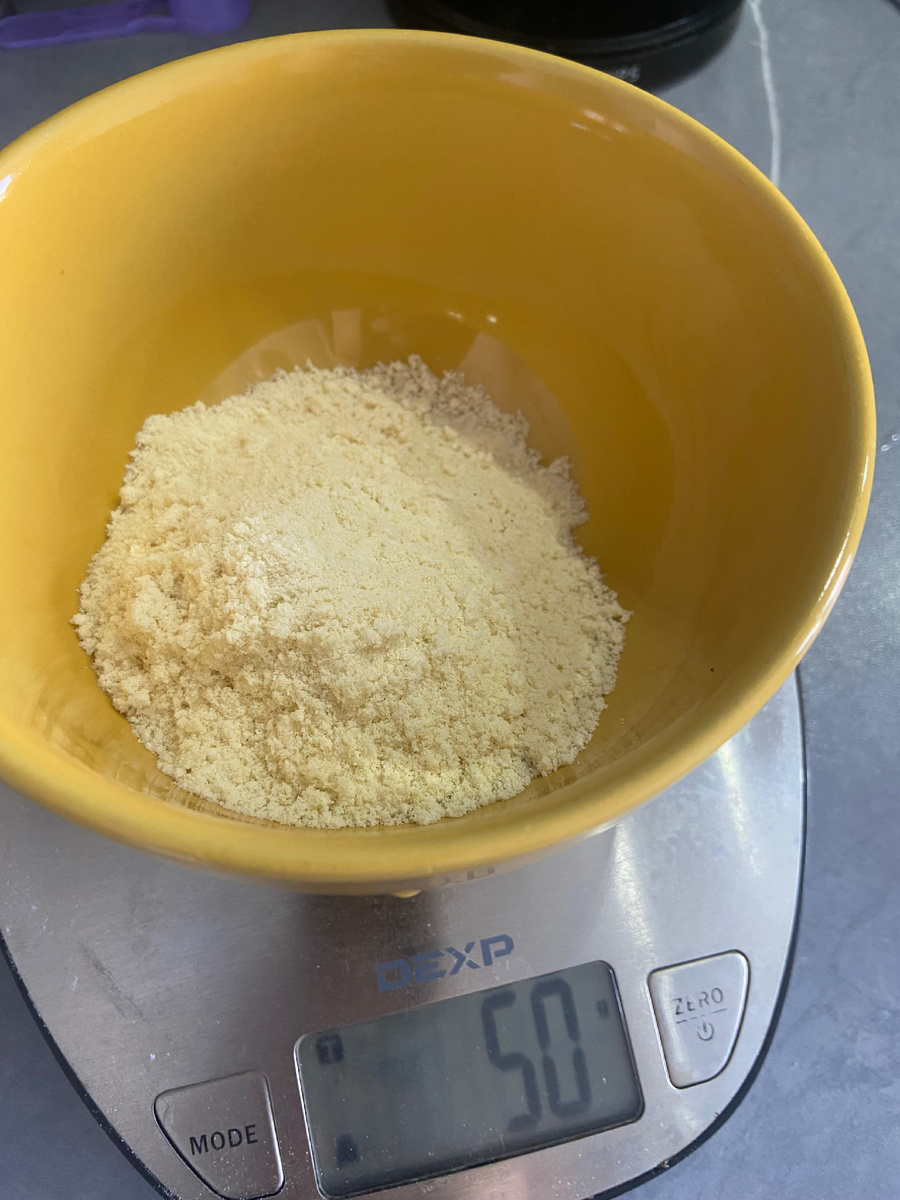 Приветствую на канале Рецепт вкуса. Сегодня покажу как быстро приготовить кето хлеб с низким содержанием углеводов. Для приготовления нам понадобится: Мука миндальная - 50 гр. Разрыхлитель - 1 ч.л. без горки Молоко - 3 ст.л. Масло сливочное - 30 гр. Яйцо - 1 шт. Соль по вкусу Для начала высыпаем необходимое количество муки. Сюда добавляем разрыхлитель и пару щепоток соли. Всё перемешиваем. Далее добавляем молоко (у меня 1,8 жирности), яйцо и растопленное сливочное масло. Всё вместе тщательно перемешиваем до однородной массы. Полученную массу ставим в микроволновку на 3 минуты. Спустя 3 минуты хлеб поднимется до такого состояния. Отлепите лопаткой хлеб от краев тарелки, достаньте перевернув тарелку на любую удобную для вас поверхность и дайте остыть. На выходе у меня получился хлеб на 136 гр. Если вы на диете или просто придерживаетесь здорового питания вам этот рецепт обязательно подойдет. Получается пышный мягкий хлеб. Отлично подойдет для намазок или просто для приема пищи будь то з