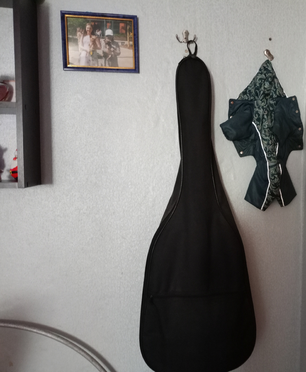 Юле тогда купили гитару, а я забрала старую гитару своего папы, которую и настроить то было тяжело, она и почти рассохлась, но учитель мне пытался её настроить, хватало настройки не надолго, она быстро расстраивалась, но все равно я на ней какое- то время занималась. Чехла у меня не было, а занимались мы осенью и часто шëл дождь и я гитару убирала в большой пакет, чем- то завязывала и так носила на занятия.