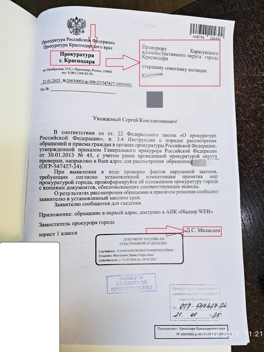 12 февраля 2025 г. я сходил в прокуратуру ознакомиться с надзорным производством и обомлел. Незаконность передачи материала в администрацию подтверждается. Обзор, где оставил следующее ходатайство, прошу внимательно его прочесть:
