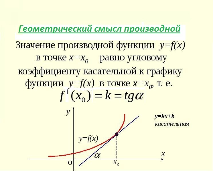 В школьных учебниках математики на базовом уровне понятие производной вводится в середине 10 класса, а на профильном - в 11 классе. Между тем, отсылка к производной в курсе физики на профильном уровне идёт уже в начале 10 класса при изучении механики (мгновенная скорость), а в 9 классе учащимся фактически приходится довольствоваться определением средней скорости, так как без понятия производной определение мгновенной скорости формулируется неточно. Многие темы в школьной программе по физике не только рекомендуют знание производной, но и выглядят в новом свете при её использовании, помогая формированию целостной картины мира. Это позволяет не только изложить физику в старших классах как точную науку со строгими определениями, но и обосновать её многочисленные применения в инженерной практике, так как понятие производной позволяет записать многие физические законы в форме дифференциальных уравнений (содержащих неизвестную величину под знаком производной), которые и моделируют поведение р