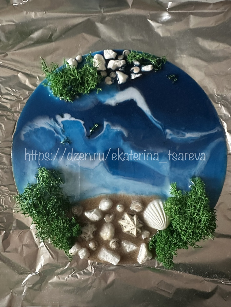 Материалы: эпоксидная смола, отвердитель, красители, песок, ракушки, камешки, стабилизированный мох, мерные стаканчики, палочки для размешивания, перчатки, маска, арт-борд, подставки.