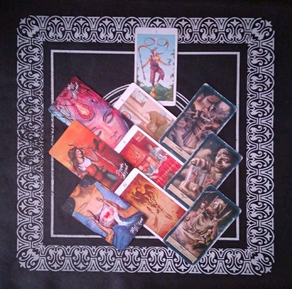 В колоде "Черный гримуар" выпали Паж жезлов, 8 мечей и Король мечей. Эти карты подчеркивают важные аспекты, на которые стоит обратить внимание. Паж жезлов указывает на необходимость быть открытым к новым идеям и возможностям. Это время, когда Вы можете получить важные сообщения или новости, которые повлияют на Вашу ситуацию. 8 мечей символизирует ограничения и страхи, которые могут мешать Вашему прогрессу. Будьте внимательны к своим мыслям и не позволяйте им сковывать вас. Король мечей говорит о необходимости принимать взвешенные решения и действовать с ясностью ума. Это может быть время, когда Вам нужно будет проявить лидерские качества и принимать ответственные решения.