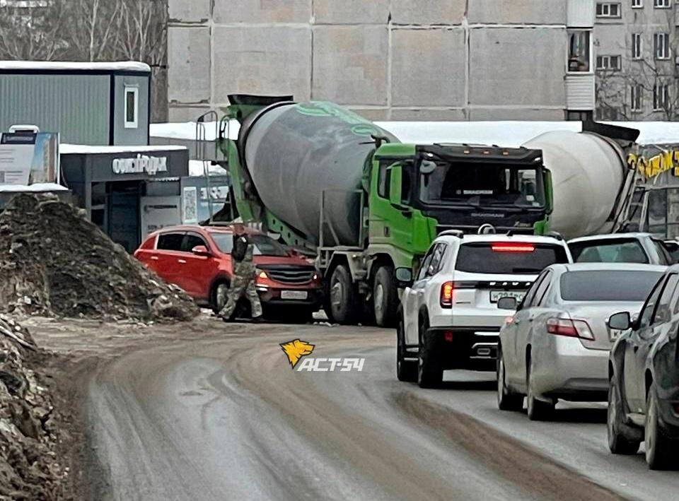 В Дзержинском районе Новосибирска произошла авария с автобетоносмесителем