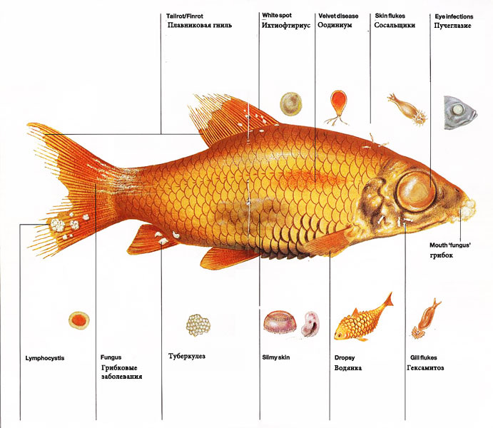 Рыбы гораздо более древние животные, чем человек, их эволюция продолжалась несколько миллионов лет. За это время рыбы идеально приспособились к условиям обитания, а их взаимоотношения с паразитическими организмами носят устоявшийся, стабильный характер и крайне редко сопровождаются гибелью хозяина. Все те заболевания рыб, с которыми мы встречаемся, в абсолютном большинстве случаев имеют своей причиной грубые нарушения условий выращивания и содержания. Ликвидировав эти нарушения и избавив рыбу от стресса вы навсегда решите проблему заболеваний. В современной ихтиопатологии это господствующая точка зрения, и именно с такой позиции следует подходить ко всем случаям заболеваний и гибели рыб. Более подробно с данной темой можно ознакомиться в монографии, ссылка на которую представлена ниже.