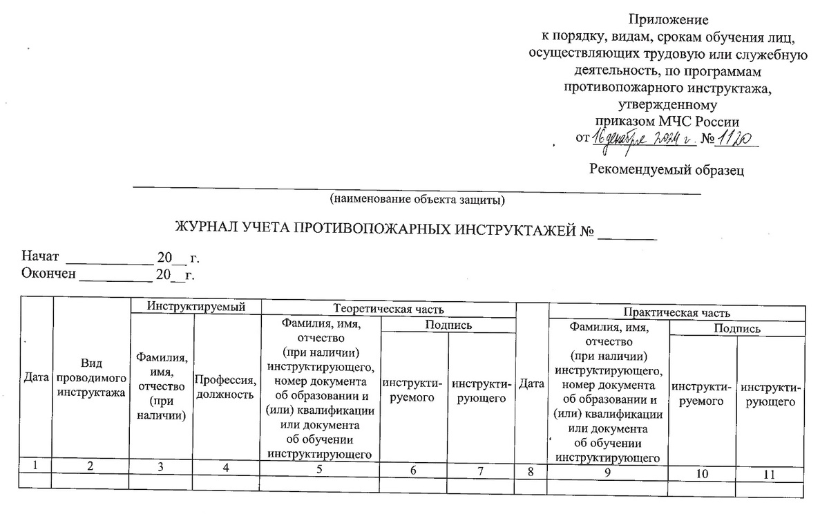 Приветствую всех наших постоянных Читателей и коллег по цеху, а также всех, кто сегодня в первый раз посетил наш Сайт! Сегодня мы читаем новый Приказ МЧС России от 16.12.2024 N 1120 «ОБ ОПРЕДЕЛЕНИИ ПОРЯДКА, ВИДОВ, СРОКОВ ОБУЧЕНИЯ ЛИЦ, ОСУЩЕСТВЛЯЮЩИХ ТРУДОВУЮ ИЛИ СЛУЖЕБНУЮ ДЕЯТЕЛЬНОСТЬ, ПО ПРОГРАММАМ ПРОТИВОПОЖАРНОГО ИНСТРУКТАЖА, ТРЕБОВАНИЙ К СОДЕРЖАНИЮ УКАЗАННЫХ ПРОГРАММ, ПОРЯДКА ИХ УТВЕРЖДЕНИЯ И СОГЛАСОВАНИЯ И КАТЕГОРИЙ ЛИЦ, ПРОХОДЯЩИХ ОБУЧЕНИЕ ПО ДОПОЛНИТЕЛЬНЫМ ПРОФЕССИОНАЛЬНЫМ ПРОГРАММАМ В ОБЛАСТИ ПОЖАРНОЙ БЕЗОПАСНОСТИ». Данный Приказ заменяет аналогичный приказ МЧС России от 18 ноября 2021 г. N 806, который в свою очередь объявляется утратившим силу. Все это дело вступает в силу с 1 сентября 2025 г. и действует до 1 сентября 2031 г. Соответственно, до сентября 2025 года, еще действует старый приказ.