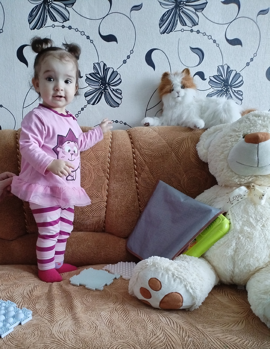 У Севы много новых звуков, слогов. На своем языке рассказы нам рассказывает. Правда, кроме баба, деда, гага, мы ничего там не понимаем. А он с серьёзным видом нам объясняет.