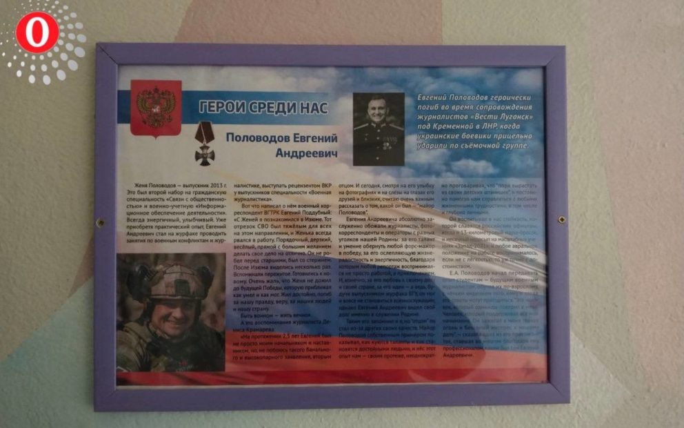 Погибшим на СВО выпускникам факультета журналистики установили памятные доски в Воронежском государственном университете. В субботу, 22 февраля, фотографии в редакцию «Обозреватель.Врн» прислали читатели. Торжественное открытие памятных досок в честь выпускников Евгения Половодова и Дмитрия Леонтьева состоялось в четверг, 20 февраля. Офицер пресс-службы Минобороны Евгений Половодов погиб 10 апреля прошлого года во время обстрела съемочной группы «Вести Луганск». Его жизнь оборвалась в возрасте 33 лет на территории ЛНР – под Кременной. У Евгения Половодова остались мама, жена и маленький ребенок. Его представили посмертно к награждению орденом Мужества. Он окончил факультет журналистики в 2013 году. Офицер пресс-службы международного противоминного центра МО РФ Дмитрий Леонтьев погиб в самом начале специальной военной операции. Отпевание прошло в Храме в честь иконы Божией Матери «Всех скорбящих Радость» на Лесном кладбище. В последний путь героя проводили родные, близкие, сокурсники и