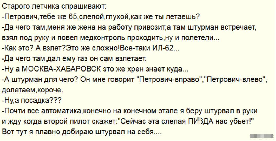 Хорошая песенка про самолеты и летчиков. Мне всегда нравилась, несмотря на некоторую трагичность, она дарила надежду на то, что все кончится хорошо. Есть сейчас такие песни. Я понимаю, что время другое и песни другие, но пусть не именно такие, но что-то схожее по общему смыслу, а не по конкретике. На днях нам рассказали очередную прогрессивную новость, из которой можно сделать вывод, что в очередной раз у нас все впереди и нам есть к чему стремиться. Самолетик у нас сделать пытаются, новый. "Кукурузник". А он не получается. Уже много лет не получается. Не какой-то там истребитель или бомбардировщик супер-пупер новый стопятьсотого поколения - КУКУРУЗНИК. Как я поняла, кроме кузова нет больше ничего. Пламенного мотора нет, электроники нет, программ нет. Пытаются сделать его 6 лет, и сейчас нужно ещё 10 миллиардов денег, чтобы довести до ума неизвестно когда. Ещё раз повторюсь, пытаются сделать "кукурузник". Теперь вопрос, а могут сделать старый "кукурузник"? Ответа нигде нет. Когда-т