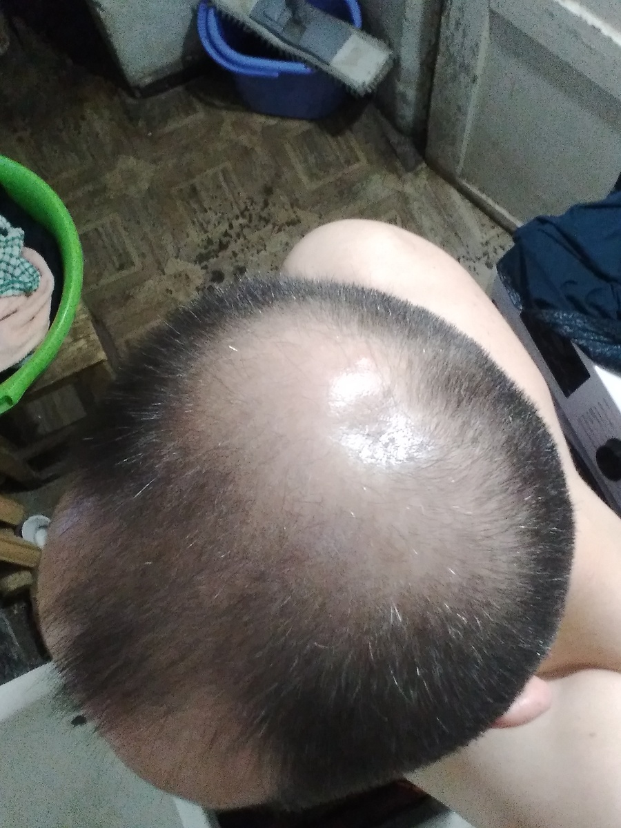 Здраствуйте мои дорогие это мой первый день применения миноксидина это моя лысина волосы седеют все очень плохо начал лечить посмотрим какие результаты будут через месяц и хочу пропить курс цинка. 7g085djgoawa3pd5