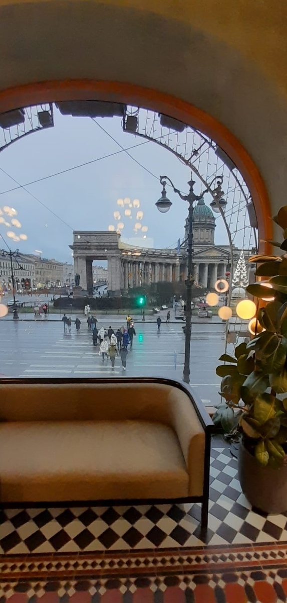 Доброго времени суток, дорогие читатели! Сегодня я приглашаю вас посетить знаменитое кафе "Rene" на Невском проспекте. Вдохновимся интерьером, посмотрим цены и попробуем что-нибудь вкусное. Новый 2025г я встречала в Северной столице. Кафе "Rene" я включила в обязательную программу поездки, так как ранее посетить его мне не удавалось - оно было закрыто на реконструкцию. Но теперь, всем ценителям эстетики, истории и вкусной кухни вновь доступна эта возможность. Заведение расположено в знаменитом задании Зингер. Добраться можно на метро ст. «Невский проспект» и на наземном транспорте ост. «Метро Невский проспект». Кафе расположено на втором этаже здания. Посетителей встречают хостес и провожают к свободным столикам. Мне удивительно повезло подойти без очереди и занять стол у окна с видом на Казанский собор. Уже после я увидела, какая образовалась очередь из желающих попасть в кафе. Если вы не располагаете свободным временем, то лучше не ловить «удачу за хвост», а забронировать столик зара