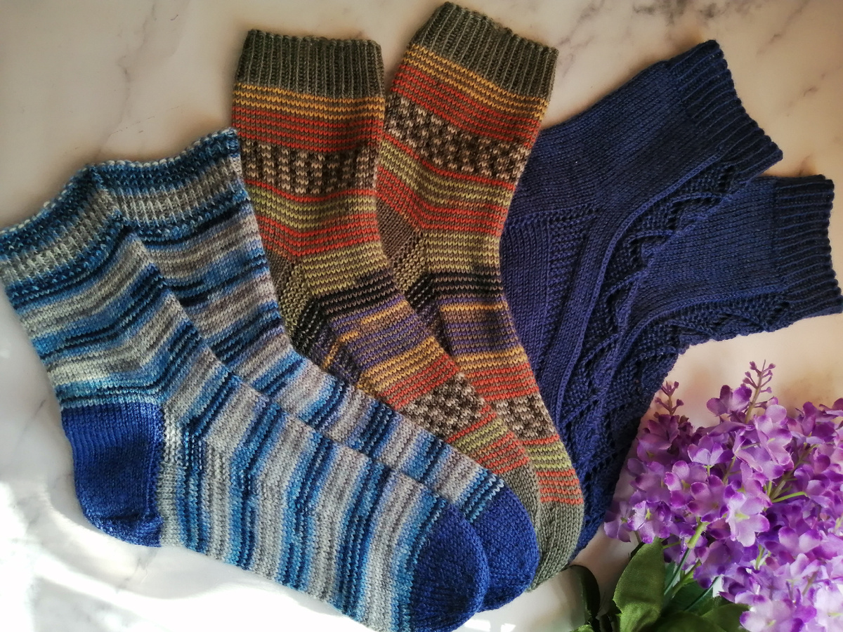 Добрый день, друзья! Продолжаем пополнять носочную коробочку. Сейчас я стараюсь уделять время использованию остатков носочной пряжи, которой у меня скопилось очень много, но так же вяжу и однотонные модели носочков с различными узорами. Что же я навязала за последнее время, что меня не было на канале. Связала женский джемпер из тонкой пряжи спицами, сейчас вяжу еще один по описанию из старого журнала. Готовы 3 пары носочков. Вся пряжа, из которой я вяжу, носочная от Alize. Вяжу на спицах 2,5 мм. Обычно на женские носочки набираю 64 петли, на мужские чуть больше. Люблю метод "Хеликс" и часто его использую для остатков пряжи. Иногда комбинирую 2 пряжи: основное полотно вяжу одной пряжей, а резинку, пятку и мысок другой. Освоила новый мысок в виде Звездочки. На узкую ножку он мне показался просто идеальным. Носочки связаны из носочной пряжи Пряжа: Alize Superwash Artisan Состав: 75% шерсть, 25% полиамид Метраж: 420 м на 100 г Цвет: 797 Вязала на спицах 2,5 мм на 62 петлях. Вес готового и