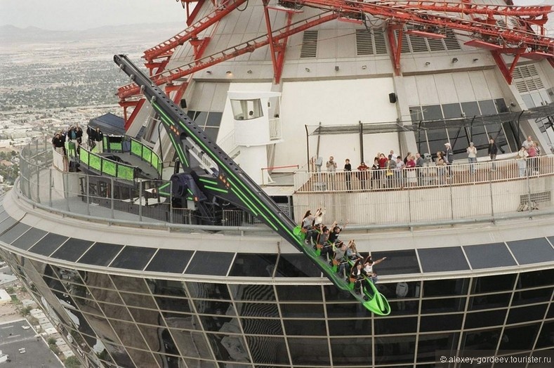 Чтобы попасть на аттракцион, нужно подняться на высоту около 265 метров на крышу отеля "Стратосфера" .