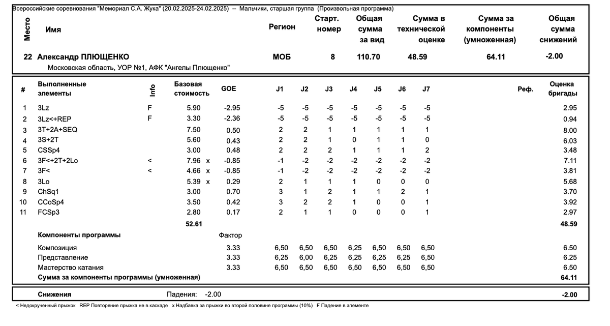 Приток зрителей и комментариев в трансляции, а также спортивных ресурсах четко обозначил появление Александра Плющенко на соревновательном льду для исполнения своей произвольной программы. Такую активность пользователей-болельщиков фигурного катания однозначно не видно было очень давно. Особенно на соревнованиях по младшему возрасту. Понимаю, что компоненты Александра могли повергнуть некоторых зрителей в недоумение, но в остальном судьи не стали жалеть Плющенко-младшего, отметив ему если не все, то многое. Саша впервые появился на большом турнире среди лучших спортсменов по своему возрасту. Есть ребята старше Саши, есть чуть младше. Факт, что Артем Федотов родился в начале августа 2012, Добромир Воронов - в сентябре 2012. Вопрос по хореографии надо все-таки в первую очередь задавать Илье Авербуху, постановщику этой самой ПП, где Александр дважды "напивался" ромом и в конце делал жест "секир-башка". Выглядело агрессивно. Учитывая как Илья Авербух вдохновенно изъяснялся после потря