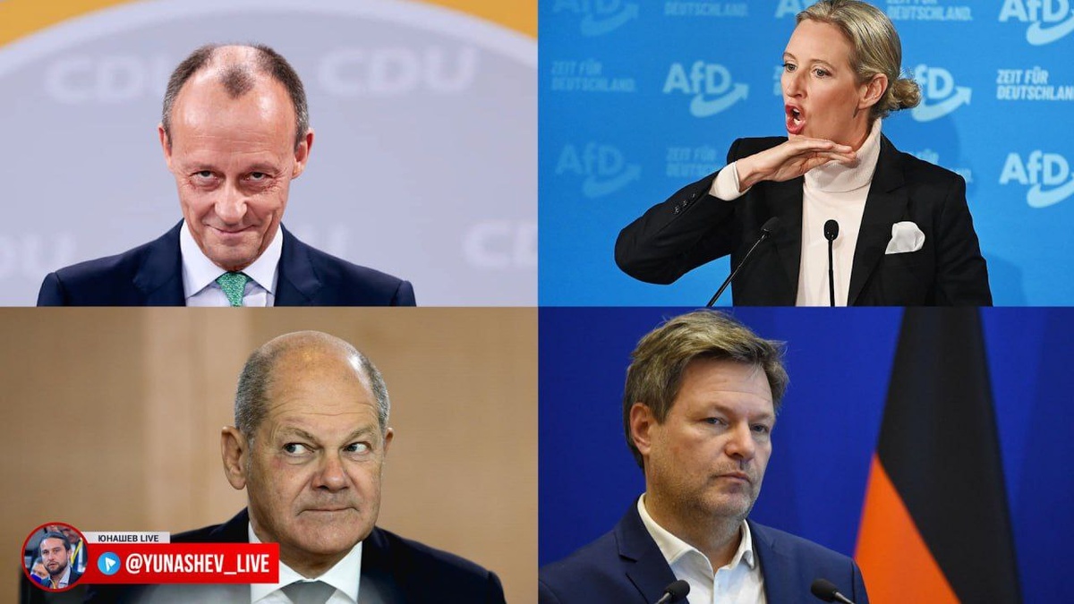 В воскресенье в Германии пройдут досрочные парламентские выборы, решил обозначить расстановку сил для понимания, как результаты голосования могут повлиять на отношения России с ФРГ. Христианско-демократический союз (ХДС) и Христианско-социальный союз (ХСС) Неопределившиеся ястребы Рейтинг: около 30% Наиболее популярная партия. С одной стороны — жёсткая антимиграционная политика и акцент на традиционные ценности (а насаждаемая «повесточка» и засилье мигрантов волнуют немцев больше всего). С другой — очень жёсткая антироссийская риторика. Вероятный кандидат на пост канцлера Фридрих Мерц выступает за поставку Украине дальнобойных ракет. При этом принимать непосредственное участие в вооружённом конфликте он не планирует, что добавляет ему популярности внутри Германии. Чужими руками, проще говоря. Правда, Мерц ведёт себя как флюгер, он то обещает поставить ультиматум России, то говорит о необходимости налаживания связей с ней как с «европейской страной». Видимо, будет ориентироваться по с