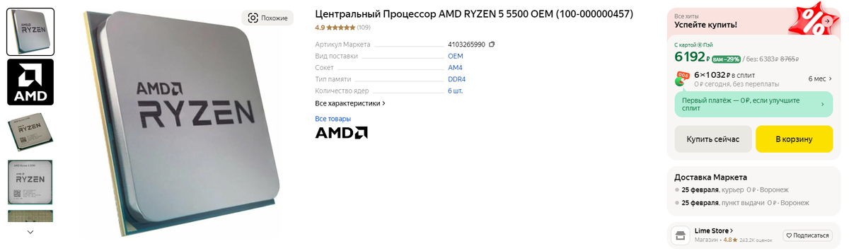 И так приступим к выбранным комплектующим: 1. Процессор AMD RYZEN 5 5500 OEM отличный процессор по соотношению цена-качество, хватит на любые задачи как сёрфинга в интернете так и тяжелых игр. 2. Материнская плата MSI A520M-A Pro Ratail microATX, 2 слота DDR4, 4xUSB 3.2, 1xM.2 простенькая материнка которой достаточно для всего необходимого подключения любой переферии. 3. Устройство охлаждения(кулер) ID-Cooling SE-214-XT Basic охлад которого с головой хватит для выбранного процессора, даже с запасом. 4. Оперативная память Teamgroup Team Group DDR4 16Gb (2x8Gb) 3200MHz pc-25600 Vulcan Z GRAY сейчас 16гб это минимальная база для всех задач, поэтому был выбран лучший дешевый вариант, которая еще и имеет хороший внешний вид. 5. SSD накопитель Apacer M.2 PCIE 512GB без ссд сейчас некуда поэтому и выбрал её, т.к. она отлично подходит для любых задач, достаточно быстрая, что хорошо скажется на отзывчивости системы и быстрых загрузок в играх, памяти вполне достаточно на первое время уже то