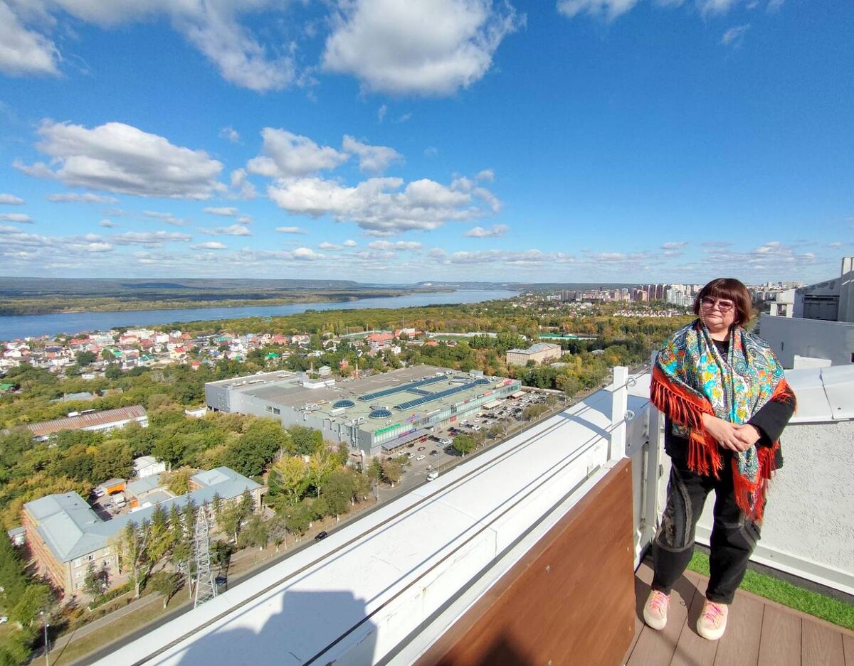 Смотровая площадка Sky roof. Работают только по предварительной записи и оплате. Всё подробности - на сайте, ссылка внизу. Теперь что же это такое. Честно, просто оборудованная крыша жилой высотки. Нас у подъезда встретила бабушка, поднялись на лифте, потом немного пешком по лестнице. Время - полчаса. Но честно, нам этого хватило "за глаза", да и что там делать полчаса - не знаю. Теперь о самом главном - виды. А видим мы современную Самару. Неплохо, но и "ах" не было. Забегая вперёд скажу, что на бесплатной Вертолётке понравилось гораздо больше. Итог. Имеет место быть. Если есть свободное время и деньги, то почему бы и нет? Но вот второй раз, на мой взгляд, там делать нечего. P.s. видео следом. https://sky-roof.ru/