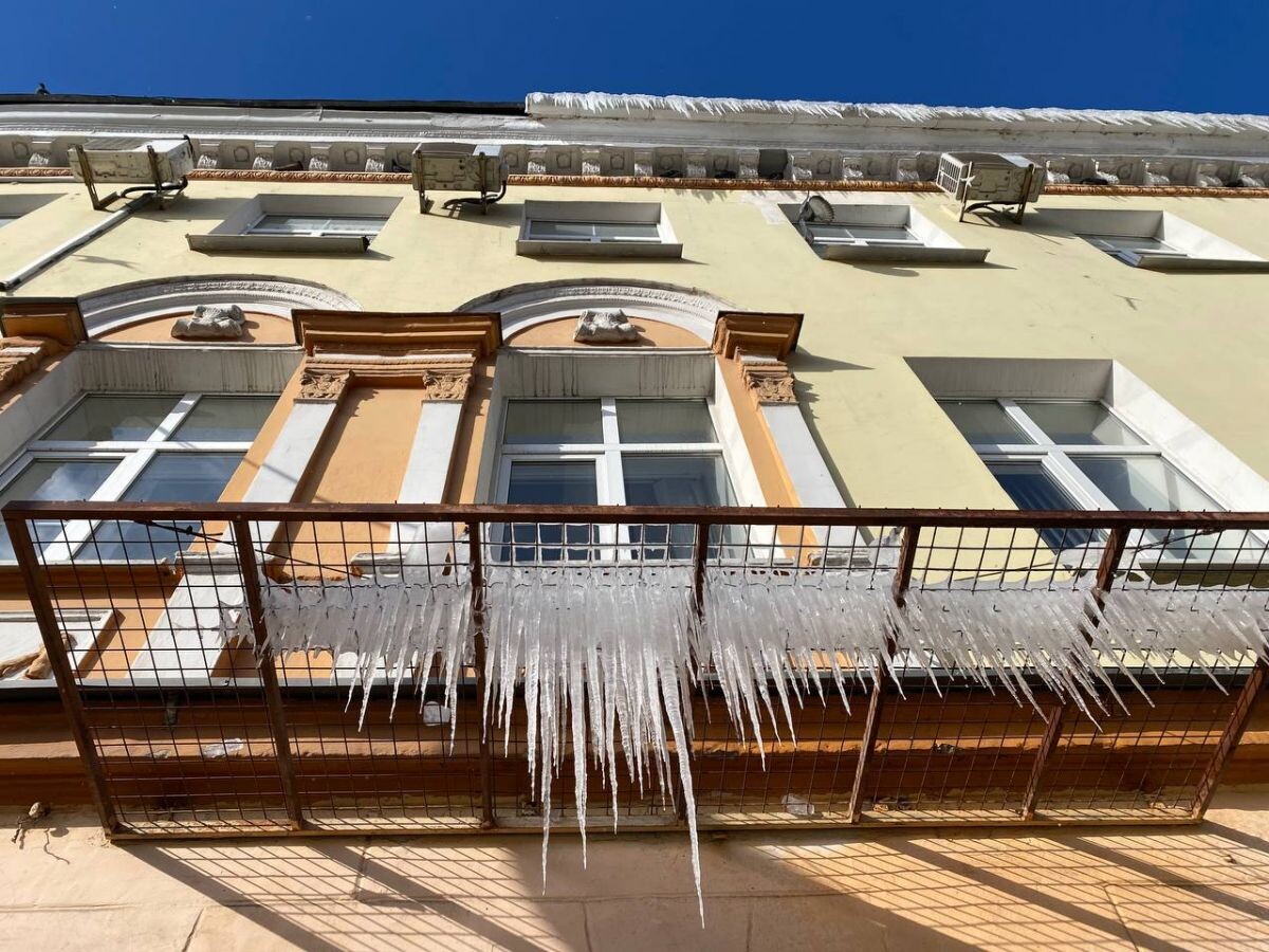 Некоторые дома в историческом центре Воронежа "украсили" опасные ледяные "конструкции". Фотограф "ВН", гуляя по облцентру субботним днем, обратил внимание на огромные сосульки над головой. По словам сотрудника редакции, они, то есть ледяные заостренные фигуры на крышах, были с его рост. Так, тающий снег создал большие сосульки на балконах и крыше Дома с совой на Алексеевского, 12 и на здании по улице Фридриха Энгельса, 56. Отметим, что территория у первого строения огорожена сигнальной лентой. Вероятно, это сделано для того, чтобы горожане не подходили слишком близко к району так называемой опасности - падения ледяных глыб. Напомним, "ВН" обращали внимание на сосульки несколькими днями ранее. ГЖИ же недавно выпускала целую памятку для УК, призывая помнить об ответственности за пострадавших в случае падения снежных масс с крыш домов.