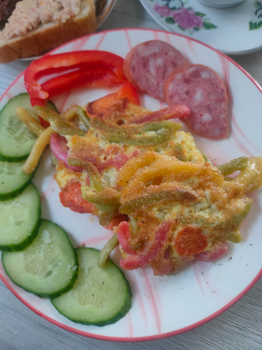 Доброго дня всем вам, милые дамы , верные спутники моего канала, а также те, кто из интереса заглядывает на его страницы! Меня зовут Надежда, и я приглашаю Вас на мою кухню, где покажу Вам наше меню на день. Суббота! Осталась ровно неделя, и закончится февраль. Но зима у нас лютует: температура никак не спадает, все ниже - 20, хорошо что еще нет сильных ветров, да и солнышко нет - нет да и выглянет, поднимет наше настроение. Встала около половины девятого, настроение бодрое, несмотря на то что стреляет в ухо и отдает все в голову. Где продуло, никак не возьму в толк, вроде без шапки не хожу, да и на сквозняке не бываю. Лечусь. Завтрак: вчера сварила лапши побольше, чтобы из нее приготовить незамысловатое блюдо, быстрое и довольно вкусное. Можно сказать, что блюдо из моего детства, так как мама часто нам его готовила: лапша с яйцом в виде лепешек, дополнением были тоненькие кольца свежего огурца, болгарского перца и копченой колбасы, а также натуральный черный кофе, к кофе была шоколадн