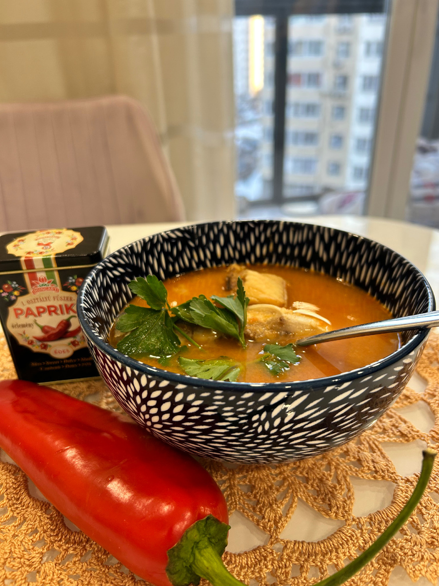 Свой первый халасле (Halászlé) я попробовала в Венгрии, на берегу озера. Сваренный в большом котле, на костре по всем мадьярским рыбацким правилам. Запах был невероятно аппетитный, но съесть я смогла лишь одну ложку! Он был таким острым, что в моем рту потом еще долго пылал огонь. Венгры обожают острую паприку и любят поперчить от души)). Тем не менее, аромат и вкус супа оказались настолько незабываемыми, что я еще не раз ела его, конечно, уже такой остроты, которую могли позволить мои вкусовые рецепторы. Исторически этот суп готовился в котелке на костре, на открытом воздухе. Из свежайшей, только выловленной речной рыбы. На дно выкладывали слой крупно нарезанного лука, затем слой рыбы, разумеется, потрошенной и разделанной, затем опять слой лука. Заливали водой, чтобы покрыть ингредиенты, доводили до кипения, потом готовили на медленном огне до готовности рыбы. Добавляли паприку, соль, давали немного настояться и ели. Современный рецепт стал более сложным, более густым и насыщенным п