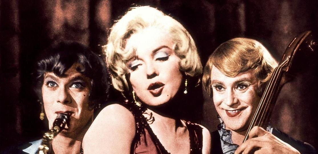 Кстати, о ... двусмысленности. Создатели фильма все время ходят по проволоке, рискуя каждую секунду сорваться в бездну, где их поджидают безвкусица и пошлость. Но умелая, ироническая манера игры Тони Кертиса (Джо), Джека Леммона, Джо Брауна, обаяние Мерилин Монро, четкость режиссуры (Билли Уайлдер) и остроумие сценария помогают балансировать на тонкой проволоке.