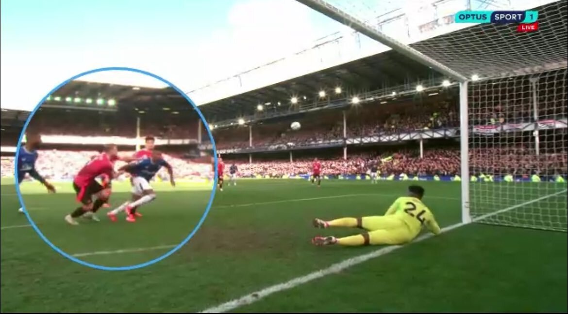 На 93-й минуте 39-летний защитник «ирисок» Эшли Янг, ранее игравший за «Юнайтед», рвался на добивание и упал после того, как его прихватил за футболку сзади защитник «МЮ» Маттейс де Лигт. Также в борьбе участвовал Харри Магуайр. Главный судья встречи Энди Мэдли указал на точку.