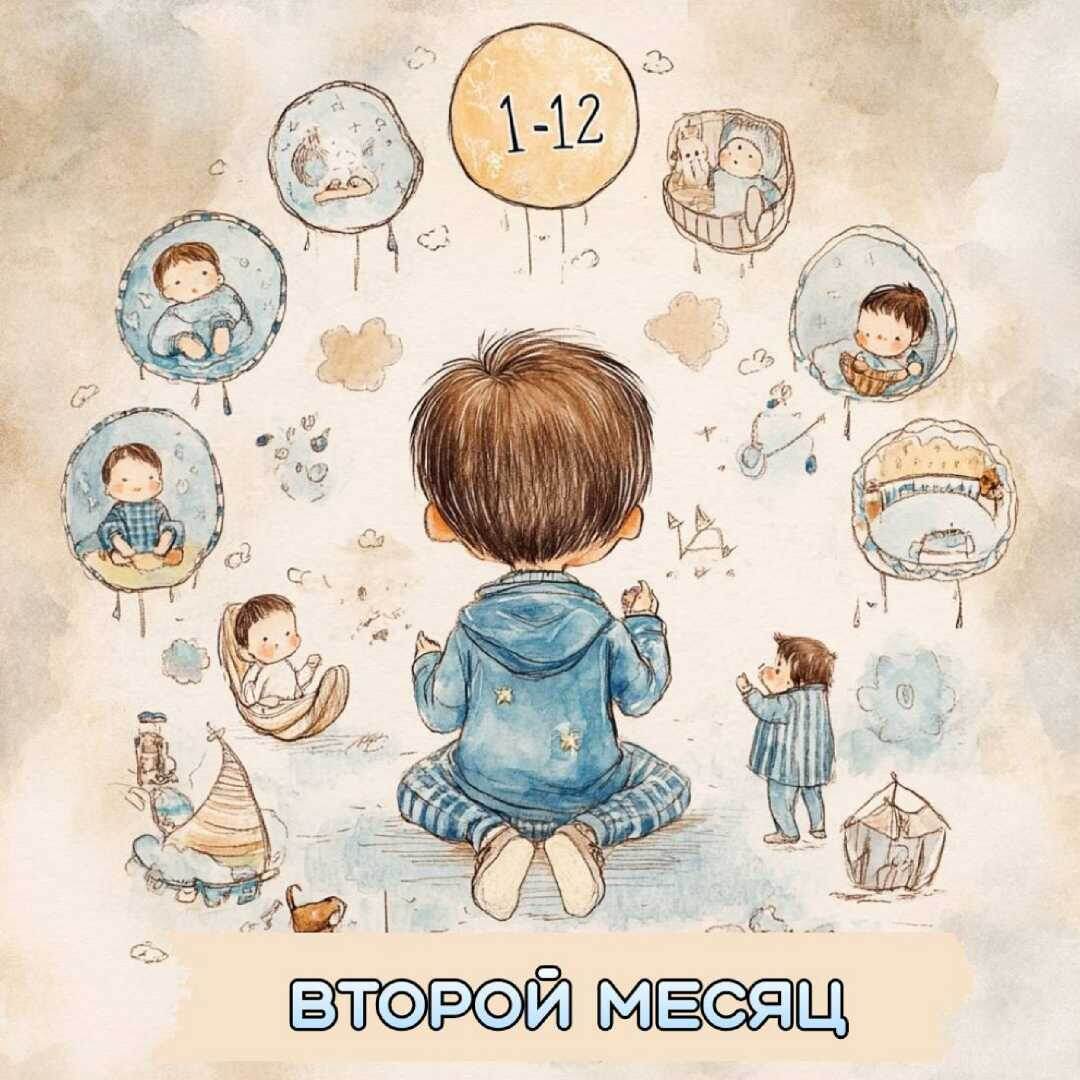 Второй месяц жизни ребёнка – это период активного роста и развития. В этот месяц происходят значительные изменения как в физическом состоянии ребенка, так и в его когнитивной деятельности. За второй месяц жизни ребенок может набрать 150-200 граммов веса и вырасти на 3-4 сантиметра. Средний рост в этом возрасте составляет 57-58 см. Средний вес 5-5,5кг. В два месяца начинается более осознанная физическая активность - движения ручек и ножек более осмысленны, ребенок пытается переворачиваться на животик, а лёжа на животике может на несколько секунд поднимать головку. Координация движений пока ещё плохо развита в этом возрасте, но ребенку иногда удается сжав пальчики удержать небольшую игрушку. На втором месяце у ребенка продолжают развиваться глазные мышцы, его взгляд становится более сфокусированным. Он начинает узнавать знакомые предметы и лица. В этом возрасте малыш уже умеет фокусировать взгляд на расстоянии 40-50см от глаз. Звуки начинают вызывать всё больший интерес и малыш мо