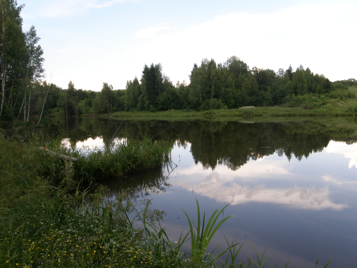 Удочки привезли быстро. Директор засел в кустах слева от нас, а егерь на противоположном берегу, на лужайке. И когда уже все перестали гомонить, начался клев. Было интересно. Клевало у всех по-очереди или одновременно, но так как в пруду рыба обитала серьезная, сходы и отрывы крючков случались часто, и сопровождались бурными проклятиями. Правда день уже закончился, и нам необходимо было хоть немного отдохнуть после рабочей недели, так как ночи в июле очень короткие. Наши хозяева открыли шлагбаум и перегнали «буханку» в лес к столику. Мы рисковать не стали, дорогу на горке и дамбе прилично размыло, и отправились на луг для того, чтобы поспать часа четыре, полусидя в машине.