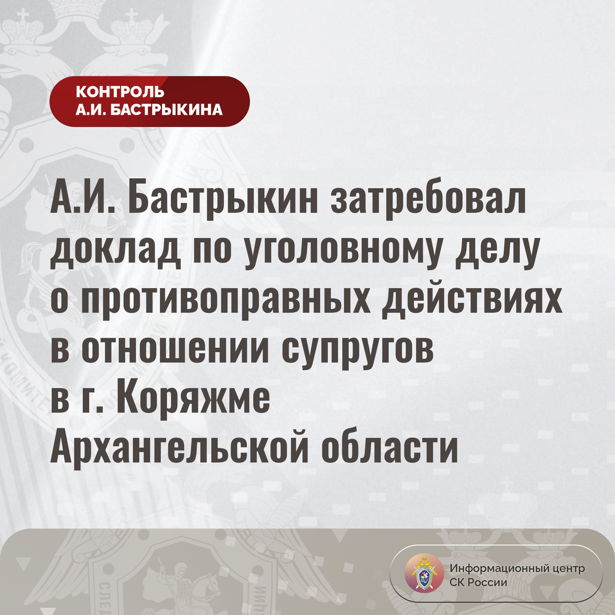 А.И. Бастрыкин затребовал доклад по уголовному делу о противоправных действиях в отношении супругов в г. Коряжме Архангельской области