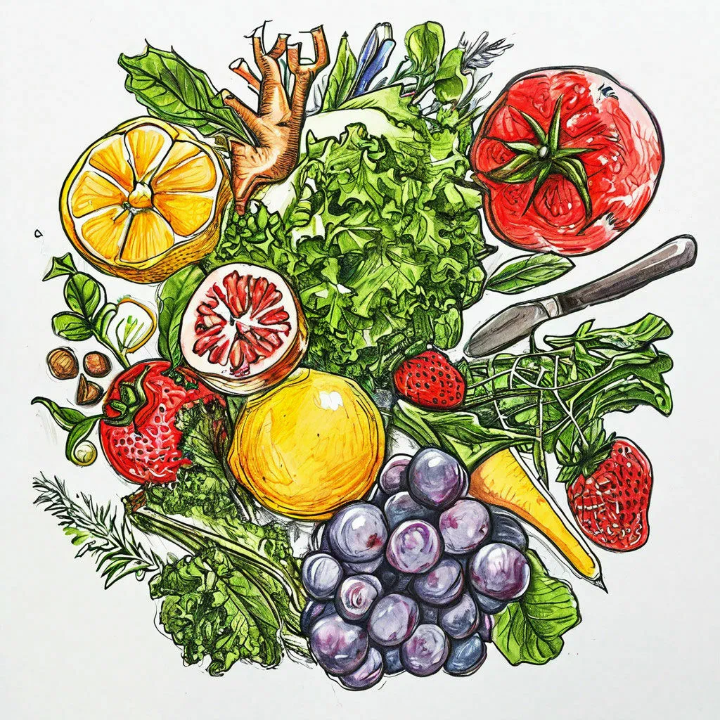 Овощи, фрукты и зелень — важные источники витаминов и минералов. Они содержат клетчатку, которая улучшает работу кишечника. Регулярное употребление этих продуктов поддерживает состояние здоровья и снижает риск некоторых заболеваний, а также улучшает самочувствие. Зелень, такая как петрушка, укроп, базилик и другие, не только придаёт блюдам яркий вкус и аромат, но и содержит большое количество витаминов и минералов. Она помогает укрепить иммунную систему, улучшить обмен веществ и нормализовать уровень сахара в крови. Фрукты, в свою очередь, являются источником энергии и бодрости. Они содержат натуральные сахара, которые быстро усваиваются организмом и дают прилив сил. Кроме того, фрукты богаты витаминами С, А и другими, которые укрепляют иммунную систему и помогают бороться с инфекциями. Овощи, в отличие от фруктов, содержат меньше сахаров, но больше клетчатки и витаминов. Они улучшают работу кишечника и снижают риск развития сердечно-сосудистых заболеваний. Важно помнить, что овощи, фр