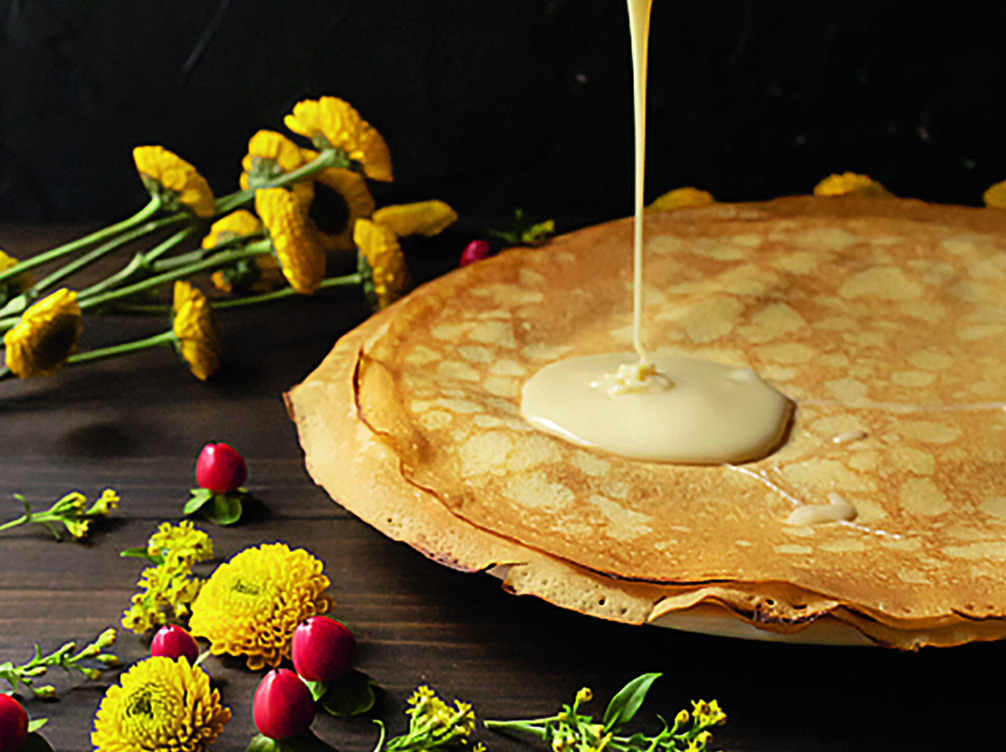 Кулинарный символ Масленицы — конечно же, блины. Многие исследователи считают их «копиями» солнца. Для наших предков выпечка и коллективная «блинная» трапеза означали победу дня над ночью, света над тьмой. В пользу этой версии говорят находки археологов в русских деревнях IX–X веков — круглые глиняные «сковороды» с зубчатыми краями и прочерченным ещё по сырой глине крестом, знаком солнца. Существует мнение, что блины удостоились обрядового применения, так как были древнейшей формой печёной мучной еды. До того как люди научились печь хлеб, они смешивали муку с водой, делали жидкое тесто и порциями выплескивали на горячие камни.