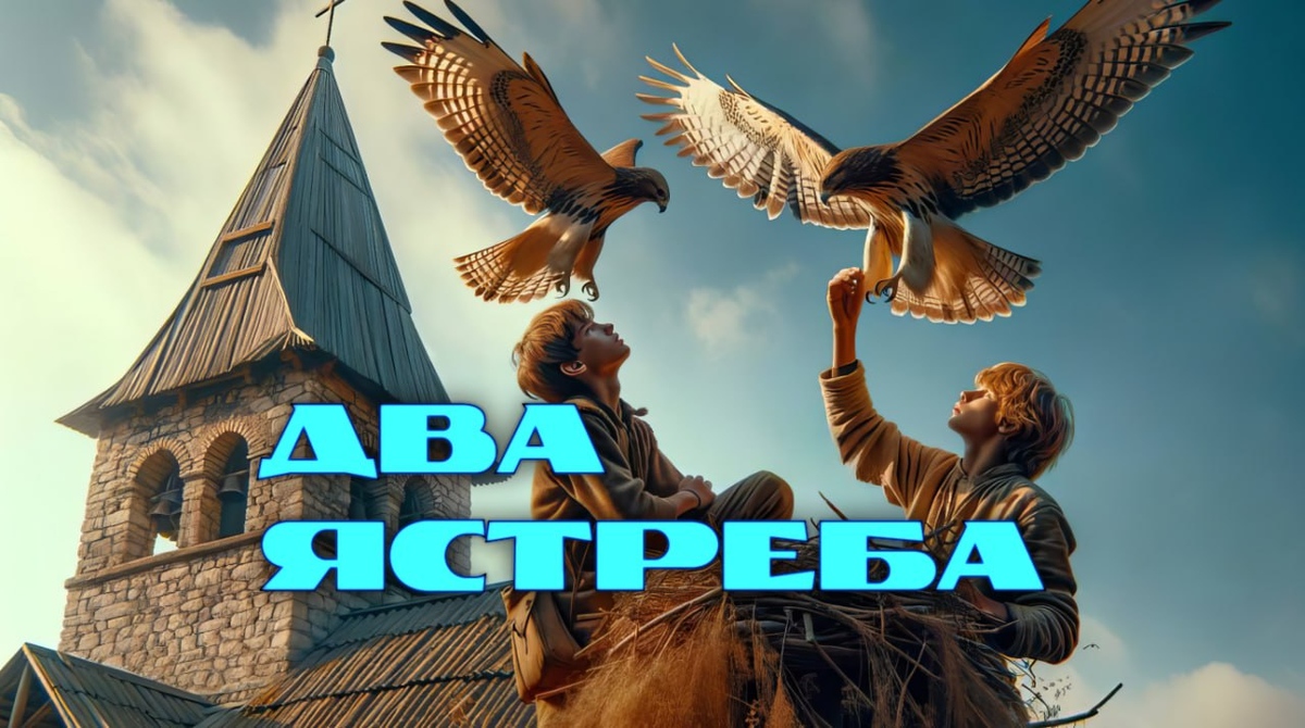 Ребята вышли на поле, за домом и как по команде, сняли с глаз тряпочки и обрезали верёвки. Подняли вверх руки, и птицы взвились распахнув свои крылья и стали подниматься ввысь. Прощаясь, они сделали круг над полем и направились в сторону церкви. Через некоторое время, ястребки скрылись из вида.