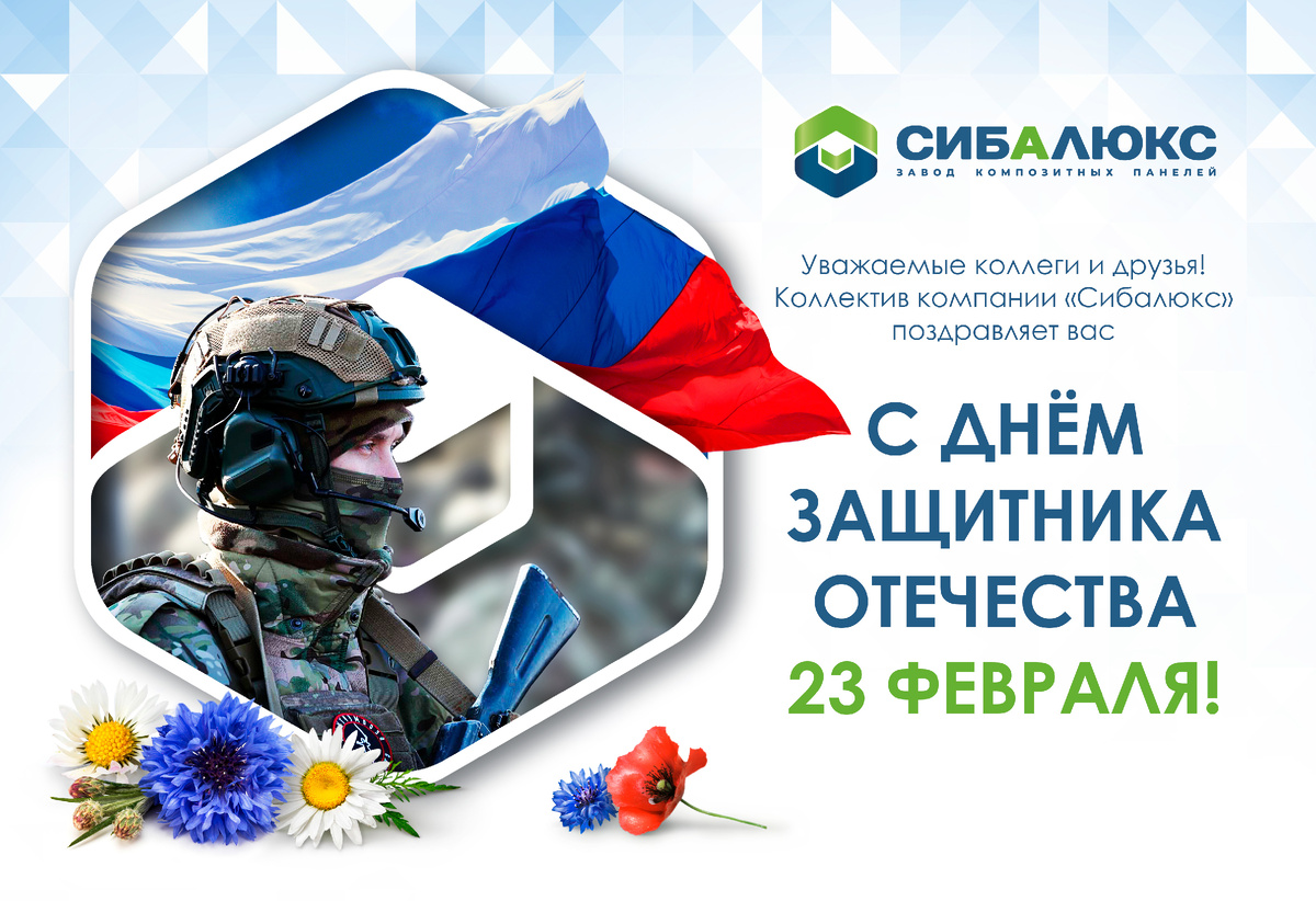 Дорогие мужчины, уважаемые коллеги и партнеры! Коллектив компании «Сибалюкс» поздравляет вас с Днем Защитника Отечества!