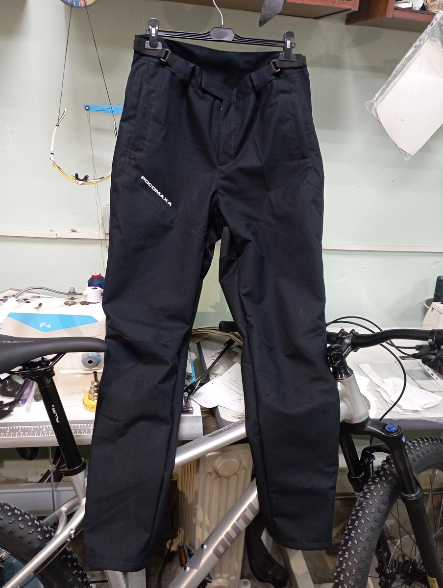 По мотивам зимних штанов сконструировал менее утеплённые штаны, которые отлично подойдут для использования где-то от -5С до +15С. Весна, осень и холодные летние дни, например с дождём и ветром. Конструктивно демисезонные штаны повторяют зимнюю модель, детали изделия аналогичны. Но передняя часть полностью изготовлена из вентилируемой ткани рипстоп. Непродуваемая вставка из Кордуры присутствует только сзади. Кордура, благодаря своей прочности и износостойкости, ощутимо увеличивает ресурс штанов. Вид спереди. Застёжка молния и пояс на липучке. Сохранены шлевки для использования ремня. Вставка из Кордуры. Фото поближе. На поясе регулировочные стропы на липучке. Пластиковые рамки Арти. Боковые карманы с молнией. Низ штанины заужен и имеет замок молнию длиной 30 см. В области колена передняя часть штанов имеет артикуляцию. Это позволяет убрать натяжение ткани на коленях при движении в седле велосипеда.