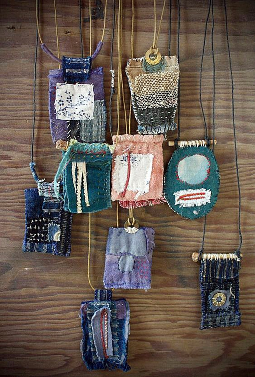 Чувству прекрасного даже в быту можно поучиться у японцев. Лаконичность во всем, умение хранить и передавать не только традиции, но и вещи, которые, отслужив свое, в умелых руках японских мастеров становятся порой настоящими произведениями искусства. Так, разбитая посуда благодаря технике кинцуги, или склеивание золотой нитью, превращается у них в музейные шедевры. А старинные изношенные кимоно обретают вторую жизнь с шитьем в технике боро или сашико — незамысловатыми стежками, способными возродить к новой жизни даже ветхое тряпье. Я вспомнила о японском умении творить красоту из самых простых вещей, когда задумала сделать к лету серию красивых ярких подвесок из кусочков тканей. Меня вдохновили на это работы знакомой художницы по текстилю и лоскутному шитью, которая показала пример использования самых негодных, на первый взгляд, тряпочек, остающихся от раскроя одежды. Для этого берется какой-либо лоскуток, по низу делается, например, бахромка, а по верху прокладывается шов по сгибу, к