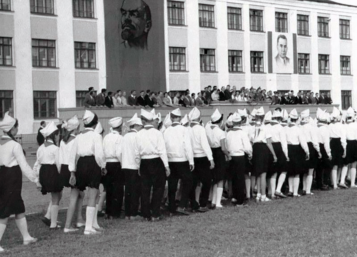 Митинг на стадионе «Динамо», посвященный встрече вологжан с космонавтами Беляевым и Леоновым. 1965 год.