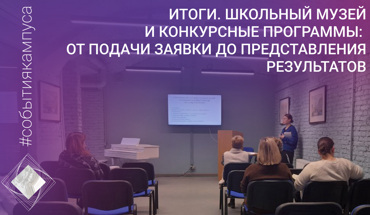 Создание школьного музея, поддержание экспозиций, поиск интересных форматов - дело, мягко говоря, не простое. Без комплексного подхода здесь не обойтись, ведь все делается на добровольной основе силами учащихся, педагогов, родителей, а работа эта- большая и серьезная. Мы уже обсудили, как создать школьный музей, какие могут быть темы, как можно представлять экспонаты, где их брать, как привлечь к музейной деятельности молодежь. Но вот что дальше? Представьте, у Вас есть прекрасная коллекция, есть поддержка руководства школы, а ученики увлечены музейной деятельностью ничуть ни меньше,чем учебным процессом. Значит, настало время поделиться своим опытом и рассказать о своих успехах в школьной музейной деятельности. Сделать это можно с помощью участия музея на конкурсе. Как пройти этот пусть - от подачи заявки до представления результатов - рассказала Никитина Анастасия Алексеевна, педагог-организатор, педагог дополнительного образования сектора исторического краеведения и школьного музеев
