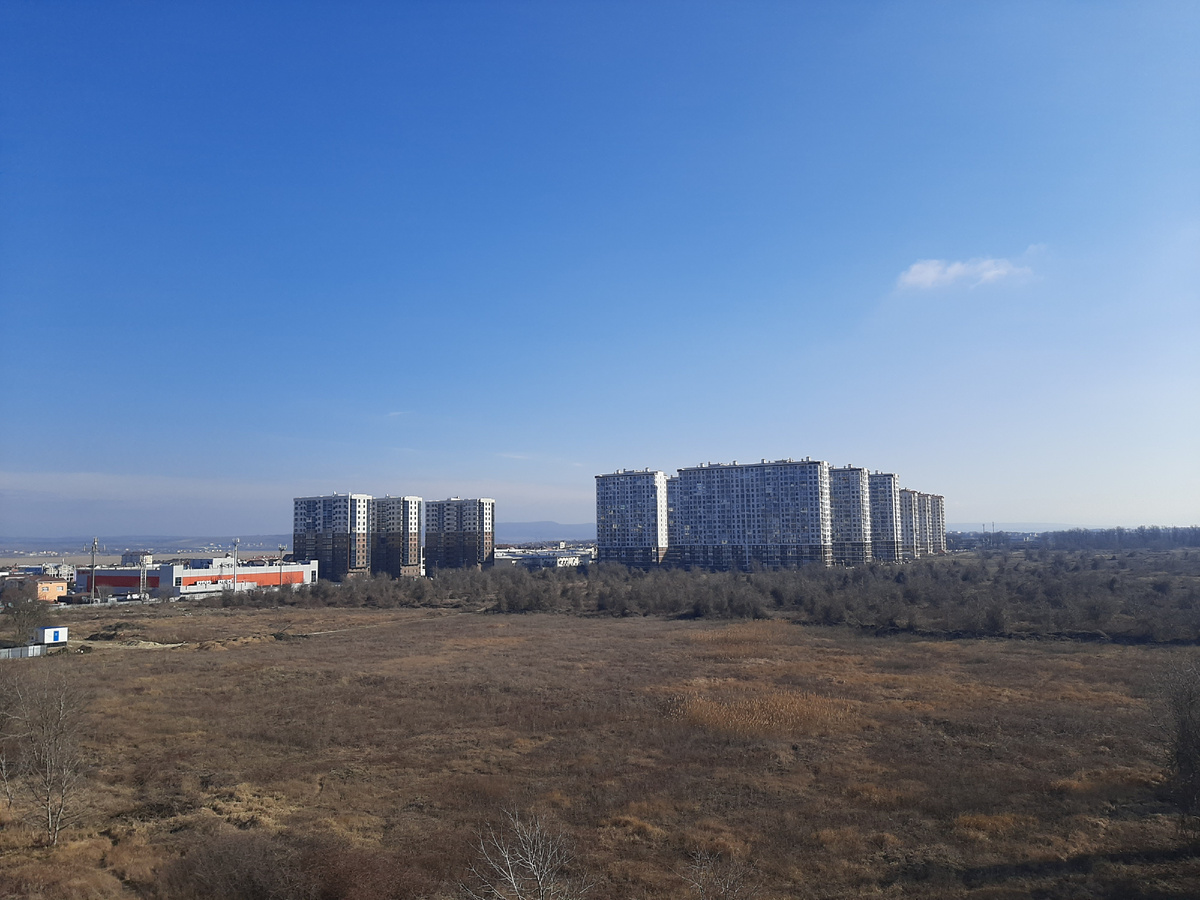 Горы в лёгкой дымке, шарики на них еле видны, но тоже там где должны быть, собачники утренний моцион совершают, жизнь идёт, хоть и холодная.