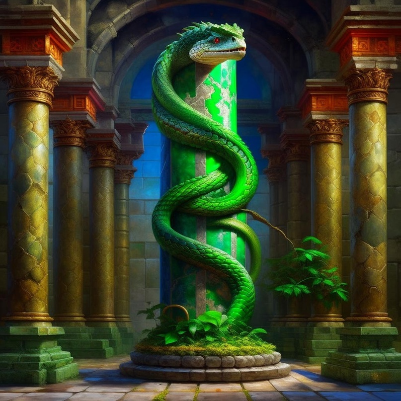 Света не хотела, но помимо воли обернулась и открыла глаза. Колонна теперь не светилась. Светилась огромная, в несколько метров , змея, которая ее обвивала. В обхвате тело, покрытое светящимися, с ладонь взрослого человека размером, чешуйками, было не менее метра. Венчалось головой с большими блюдцами-глазами и ветвистыми рогами словно выточенными из красного коралла. Света начала было вспоминать городские легенды. Но ведь там было…