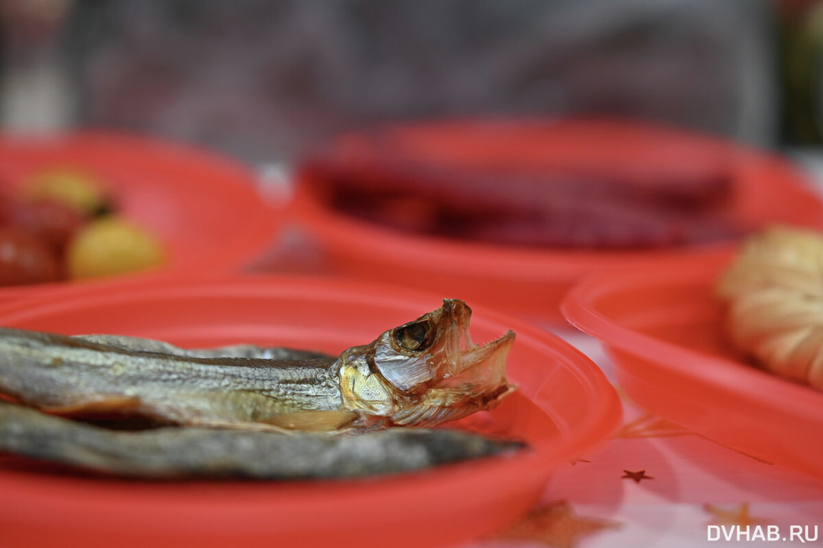 Корреспонденты DVHAB посетили мастер-класс по созданию мужского букета от творческой мастерской «Сделано с Душой», который проходил в здании Амурского утёса, и попробовали самостоятельно создать композицию ко Дню Защитника Отечества. Участникам мастер-класса раздали, продукты, которые нужно было использовать в своем букете: банки с напитками, копченые колбаски и сыр «косичку», а также сушеную корюшку, помидоры и печенье «рыбки». Кроме того для создания композиции понадобились флористическая губка для основы, упаковочная бумага и пленка, яркие ленты, бантики, скотч и ножницы, а также пищевая пленка, шпажки и зубочистки. Для начала нужно было обмотать флористическую губку пищевой пленкой. После чего, при помощи шпажек и скотча, закрепили в ней основные элементы — банки с напитками. Началось декорирование: на шпажки нанизывались продукты и располагались таким образом, чтобы скрыть скотч, которым крепились банки. Корюшку на шпажку примотали при помощи тонкого скотча, также сделали «шашлычк