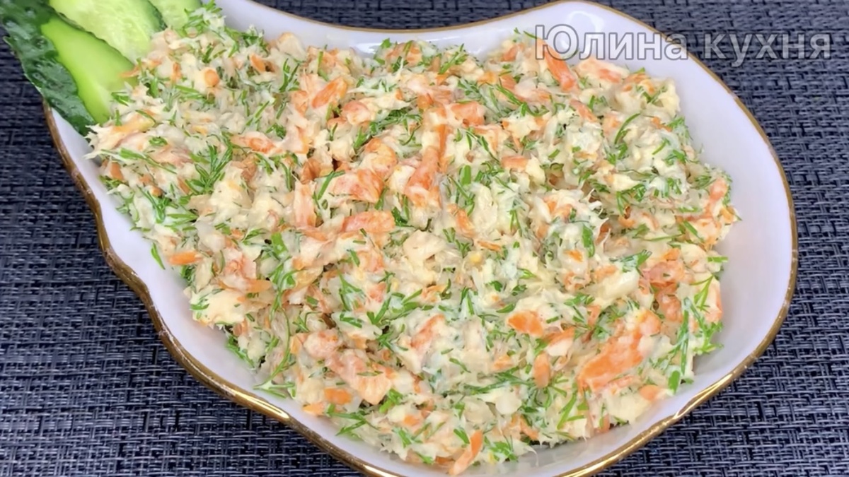 Удивила свою свекровь: Деликатесный салат «Раковые шейки» из дешёвого минтая (секретный ингредиент в составе)