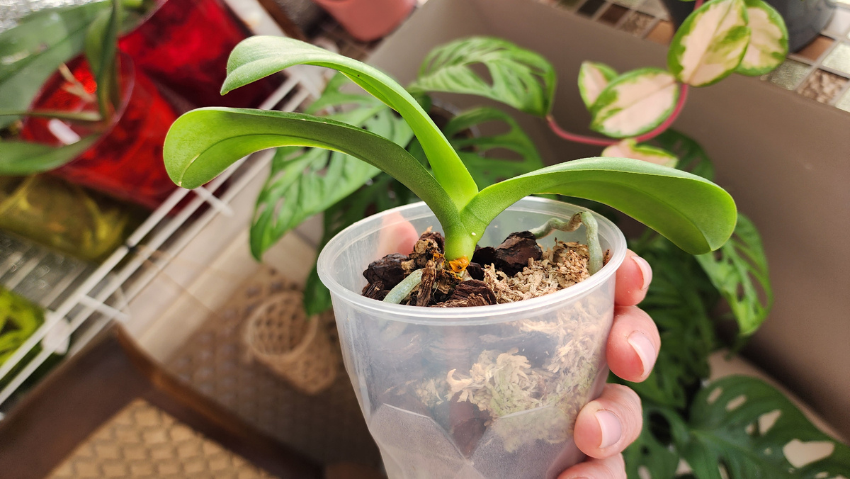 Смотрите, это Вайолет Квинтет. Я купила два растения летом в 2023 году, и им обоим хана. У меня даже нет фото цветущей, хоть я обе покупала с цветами. Они сразу как приехали, были такое себе, я получше отдала маме, а вторую себе. Моя благополучно развалилась практически сразу, но на пее сразу и была детка. Мамина есть во вчерашнем видео, там орха цвела два или три раза дома, огромными букетами, но осенью внезапно стала чахнуть, мама пересадила её, внутри все корешки были тухлые. Залив или что-то ещё- не выясняли. Вот моя детка. С другой стороны тоже пятно, но поменьше. У нее была целая куча листьев и масса перспектив, но что-то пошло не так. Три листа за последние пару недель покинули чатик. Она стоит в очень теплом месте, у неё хорошая посадка в чистой средней коре. У неё ОЧЕНЬ много корней, они в активном росте, толстые и бодрые. Но мне её хочется выкинуть прямщас. Может, косяк в том, что она до сих пор на гнилом пне? Видите справа? У нее просто оч долго не росли свои корни, она пи