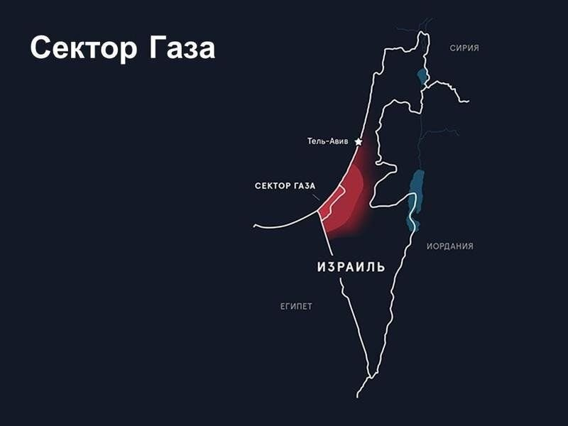Евреи как-то подсуетились, создали своё государство, а арабы пропустили вспышку, грызлись между собой, потом воевали с арабами, но проиграли с треском. В результате образовалась странная ситуация: Израиль в центре, а по бокам две арабские территории: западный берег реки Иордан и собственно сектор Газа, названный так по названию крупного города Газа, который находится на этой территории.