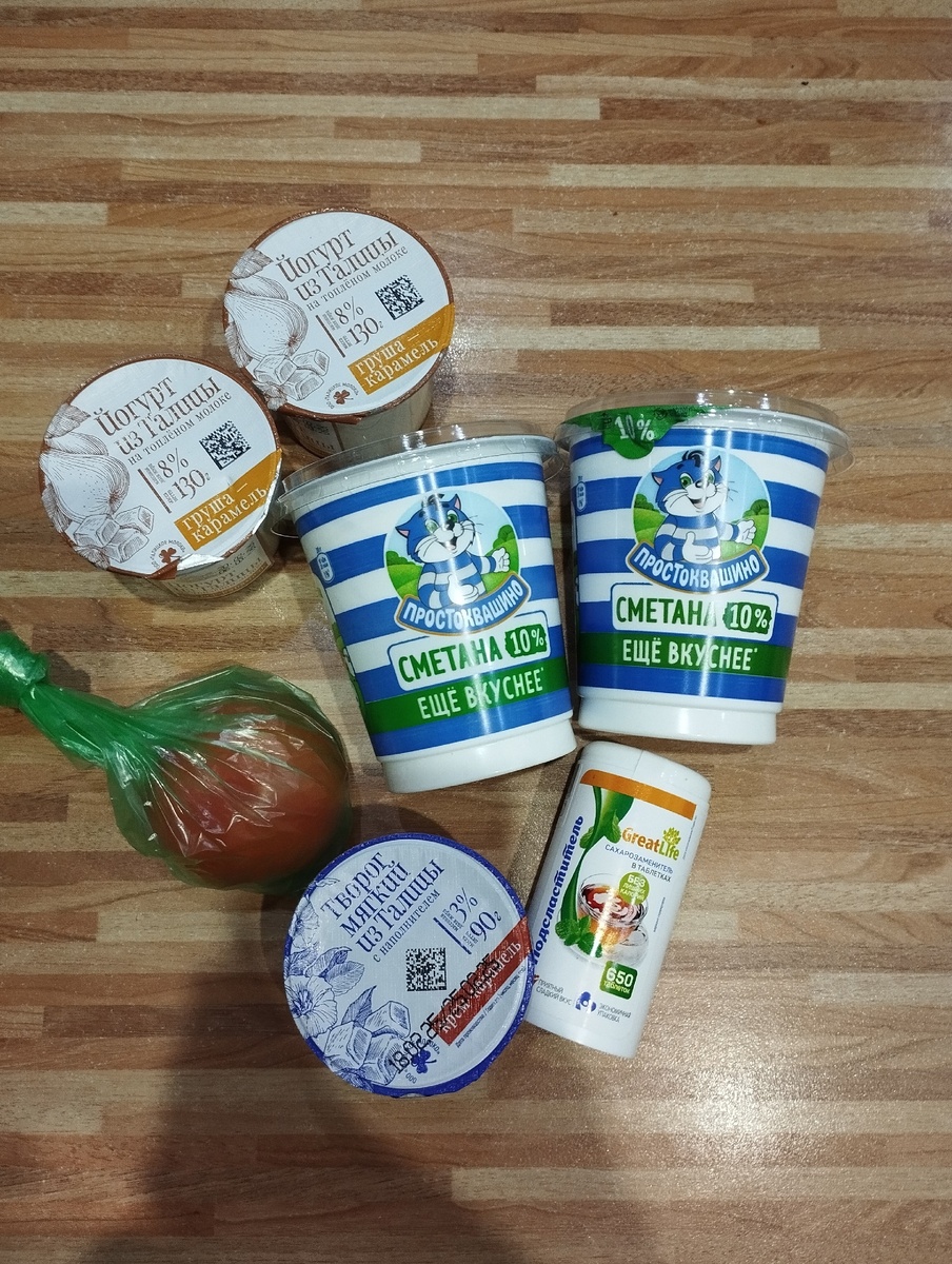 Начала я с "Пятерочки", мне нужна была сметана для приготовления сметанников, но, что самое интересное, ни одна акционная цена не была ниже, чем обычная на "Простоквашино". К бренду я отношусь хорошо, тут еще и сметана 10% (она и была нужна), а стоит большой стакан всего 79 рублей. Просто для сравнения, у других брендов такая же стоимость за меньший объем. Купила наконец-то подсластитель, но как раз из-за скидки, упаковка обошлась в 99 рублей.