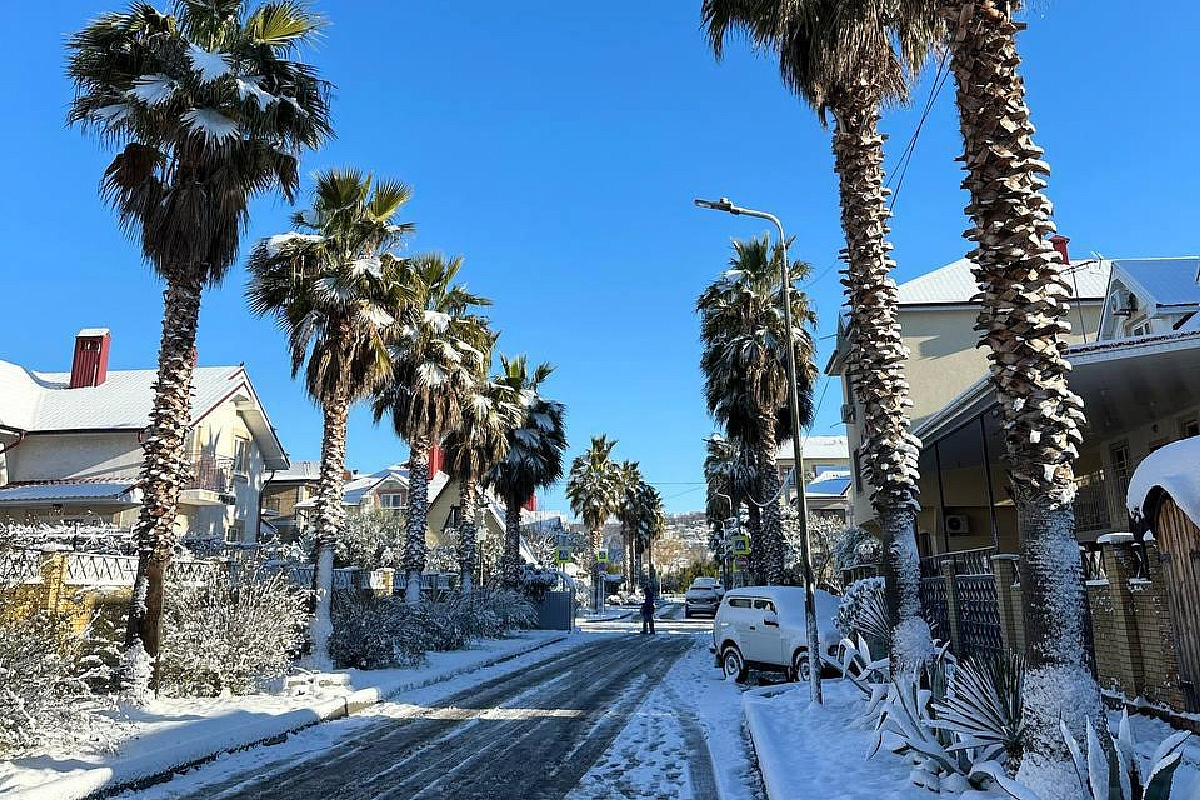 Сочи засыпало снегом: город превратился в зимнюю сказку Накануне
