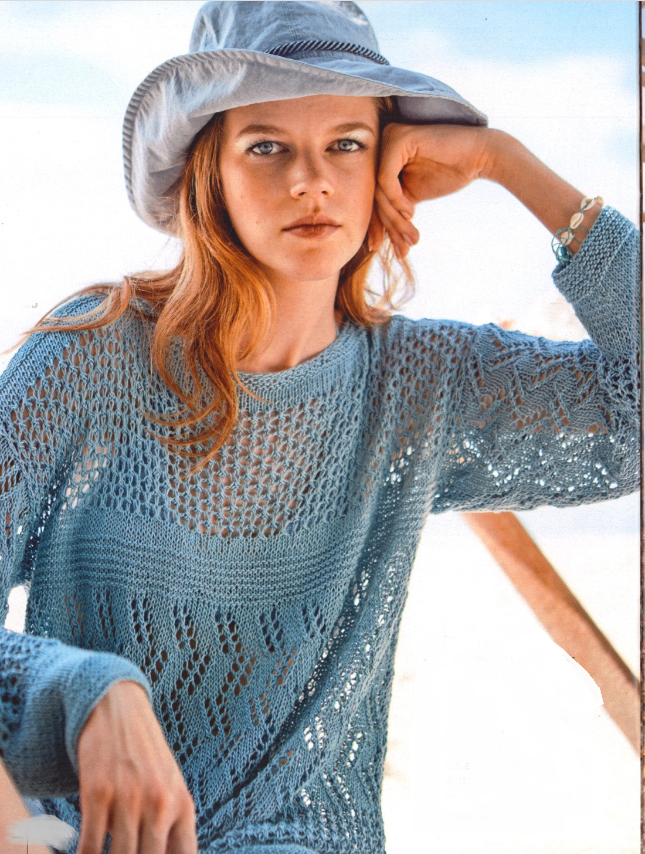 В мире моды, где тренды меняются с каждым сезоном, ажурное вязание спицами остается неизменным символом элегантности и утонченности. Изящные узоры, созданные вручную, придают одежде особую легкость и воздушность, делая её идеальным выбором для любого гардероба. Ажурные вещи, будь то пуловеры, кардиганы, шарфы или платья, не только подчеркивают индивидуальность, но и добавляют нотку романтики в повседневный образ. Сегодня ажурное вязание переживает настоящий ренессанс. Всё больше дизайнеров и модных домов обращаются к этой технике, создавая коллекции, которые сочетают в себе традиции и современные тенденции. Вязание спицами становится не просто хобби, а настоящим искусством, доступным каждому. В статье для вас 7 ажурных вещей, которые могут стать ключевым элементом вашего стиля и описание и схемы создания уникальных изделий своими руками. Два вида ажурных переплетений плюс вставки простых узоров из лицевых и изнаночных петель смотрятся очень изящно в этой модели. Размер 36-38 по 44-46