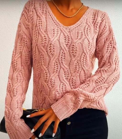 Раппорт 20 п. х 39 рядов. чтобы добиться абсолютно такого узора как на фото, в "косе" лицевые петли с одной из сторон, снимаем не провязывая или вяжем лиц. на 1 ряд ниже. Но если это сложно, то можно вязать как обычно. Набираем на спицы №3 = 90 (96) 102 п. и вяжем для планки по низу изделия резинкой 1х1 8 - 10 см Продолжаем работу спицами №3,5 основным узором Через 48(49)50 см = 116(118)120 р. от планки для формирования выреза горловины закрыть средние 22(24)26 п. и далее в каждом вт