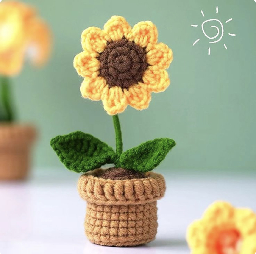 В холодные февральские дни нам так не хватает солнца и тепла! Но мы сами можем исправить эту ситуацию, взяв в руки пряжу и крючок! Мы все любим вязать цветы, а самый солнечный цветок- это , конечно же, подсолнух. Вот сегодня и посмотрим на вязаные подсолнухи, в каком виде их можно вязать , и как использовать. Связать такой маленький цветок в горшочке не составит особого труда, но посмотрите какой он веселенький, настроение сразу улучшается, глядя на него. Можно связать такие подсолнухи и в подарок, и он долго будет напоминать о каком-то хорошем событии, да и просто радовать глаз. Если нет лишнего места на столе, вот такие варианты панно на стену: На даче это будет уместно и в тему. И здесь без ловцов снов не обошлось: Очень интересно смотрится гирлянда из подсолнухов, ее также можно повесить и в беседке, на веранде: Задекорировать шторы этими цветами-хорошая идея! Или использовать их в качестве ламбрекена: Ну а если нет времени, чтобы связать подсолнухи в таком количеств